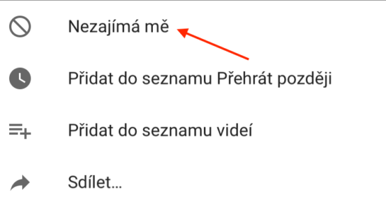 Google včera vydal malý update pro YouTube na iOS. Pro některé z nás malý ale důležitý update. Nejnovější verze totiž přináší možnost upravovat doporučený obsah. Při prohlížení YouTube vybranými video jako „doporučeno“ stačí označovat videa, která vás nezajímají a příště tam jednoduše podobná videa nebudou. K označení doporučeného. Pro označení videa jako pro vás nezajímavého stačí rozkliknout menu u něj (tři vertikální tečky) a následně ho označit jako nezajímavé.
