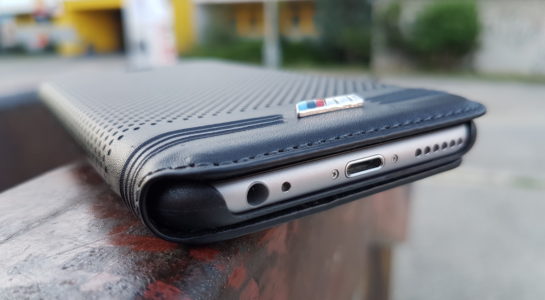 To třetí obal tímto neduhem netrpí. Logo BMW, respektive jeho sportovní divize M Power, na něm sice také najdete, ale nachází se na přední straně, která kryje displeji. Když si tedy telefon s uzavíracím obalem BMW Embossed Line Book položíte na stůl, nic se neviklá. Na tomto obalu se mi hlavně líbí, že je telefon skutečně chráněn ze všech stran a máte tak jistotu, že se mu i pří pádu z výšky nic nestane. Uvnitř se kromě pouzdra pro telefon nachází na vyklápěcí straně ještě dvě kapsy pro kreditní karty (nebo jakékoli jiné stejného formátu) a také výřez pro reproduktor, díky čemuž můžete volat i s uzavřeným obalem. Krycí strana displeje se k zadní části obalu přichytává pomocí magnetického pásku a musím říct, že drží opravdu pevně.