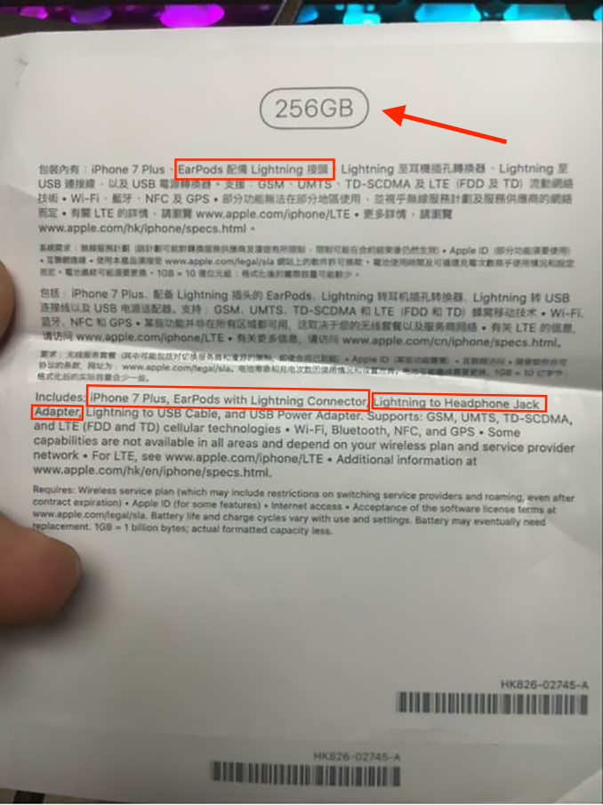 iPhone 7 Plus Lightning EarPods adapter 256GB