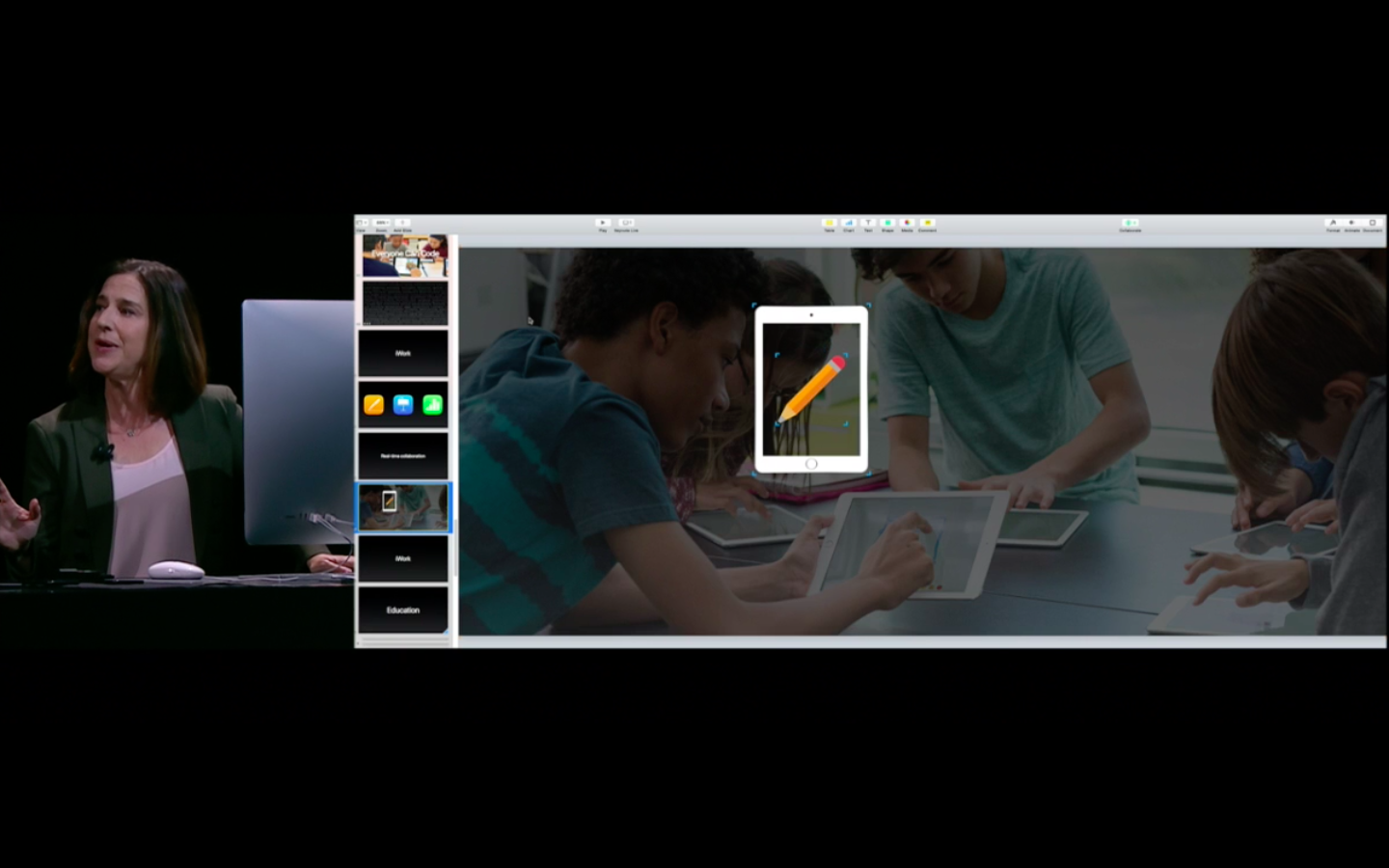 Apple vylepšil balíček kancelářských aplikací iWork, do kterého patří Pages, Numbers a Keynote. Nově budou moci uživatelé spolupracovat na dokumentech v reálném čase. Všechny změny uvidí všichni uživatelé okamžitě a můžou spolu při práci na dokumentech spolupracovat. Dokumenty se okamžitě synchronizují mezi všemi zařízeními, mezi které patří počítače Mac, iPhone, iPad i webový iCloud. V prezentační aplikaci Keynote může například jeden uživatel přidat obrázek, druhý ho ihned upravit a přidat další doplňky. Synchronizují se i všechny animace.