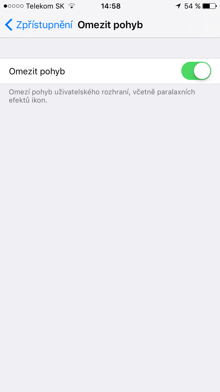 No ono to ma asi vyznam na starsich modeloch a pre usporu baterie. Inak ak vypnete paralax v obmedzeni pohybu pridete o moznost posielat imessage s efektami atrament a ostatne v tej skupine efektov…