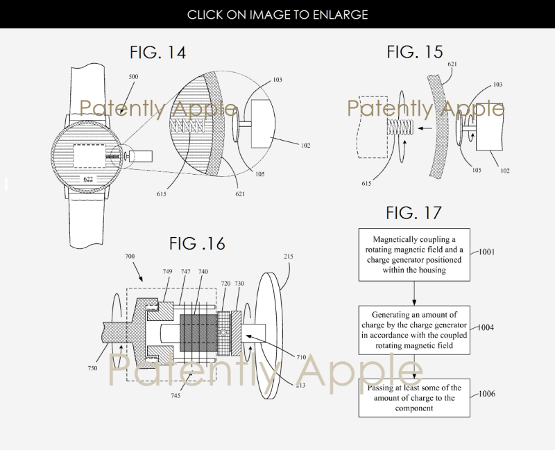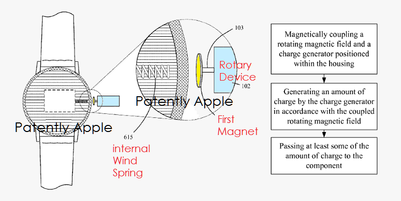 Podle patentu, který Apple nazval „Connector-free magnetic charger/winder,“ by se měly další chytré hodinky nabíjet přes svou digitální korunku. Patent popisuje, jak by Apple k nabíjení použil bezkontaktní nemagnetický materiál, externí nabíjecí mechanizmus, který by byl připojen k hodinkám, nebo způsob navíjení cívky uvnitř zařízení pomocí magnetu.