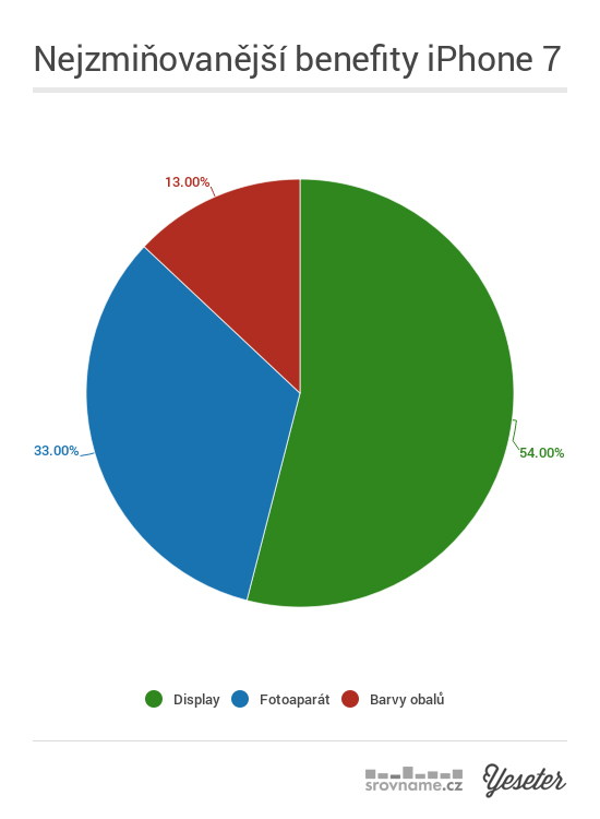 Předchozí statistiku ještě podporuje další graf, který už hovoří o telefonech samotných a za znatelně kratší období. Poměr je plus mínus stejný, ale tady už bychom si snad mohli dovolit zmínit, že se prodej telefonu iPhone v této době spustil, takže haló efekt se k tomuto haló haló tématu přímo nabízí. Přesto stav ve výsledku nebude pro Apple zase až tak příznivý. „Z interních dat vyplývá, že zájem o iPhone 6S byl mnohem větší než o aktuální modely iPhone 7“, sděluje David Folprecht ze Srovname.cz.