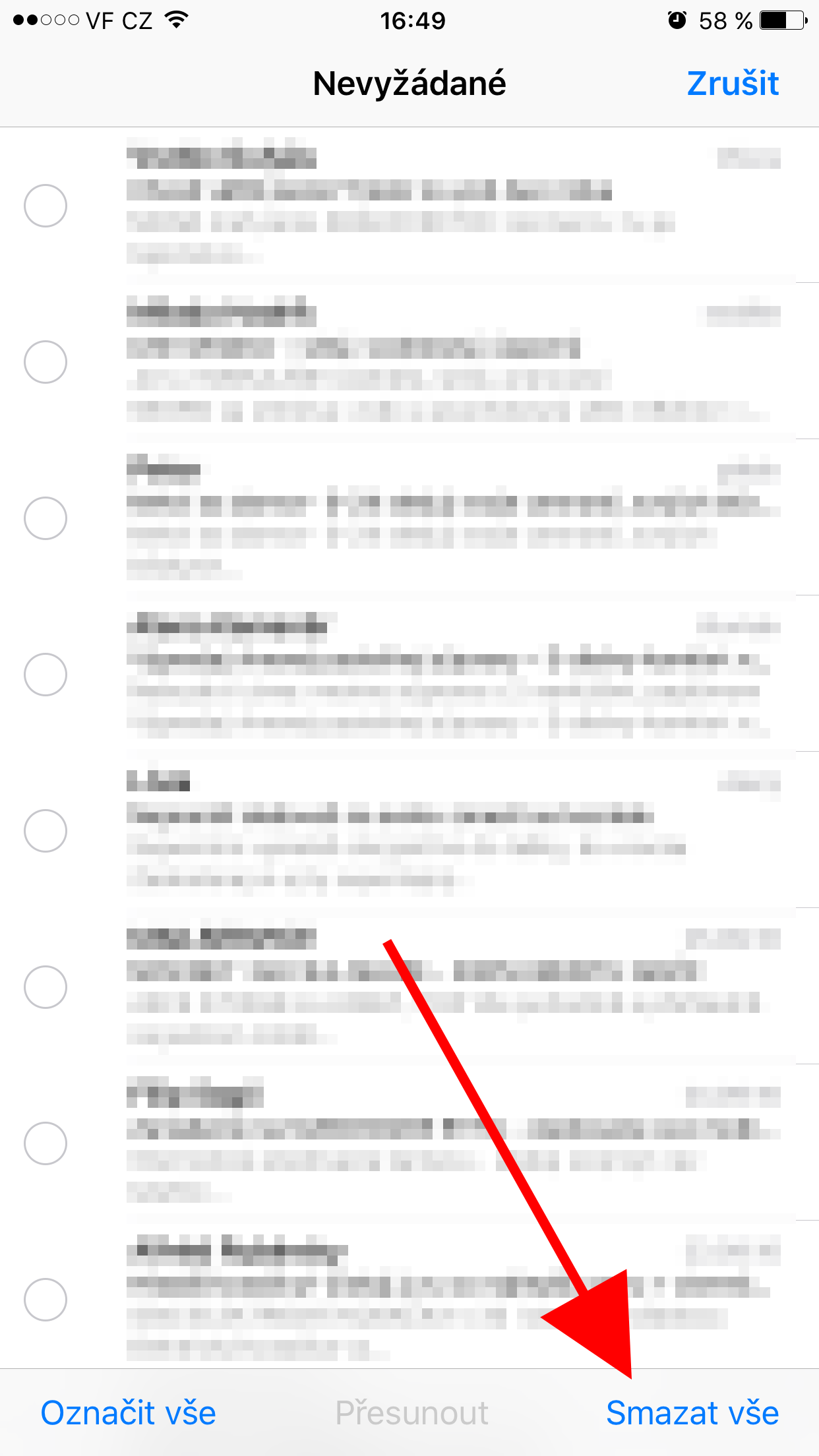 - Na tlačítko už stačí jen kliknout a potvrdit, že chcete vymazat všechny zprávy.