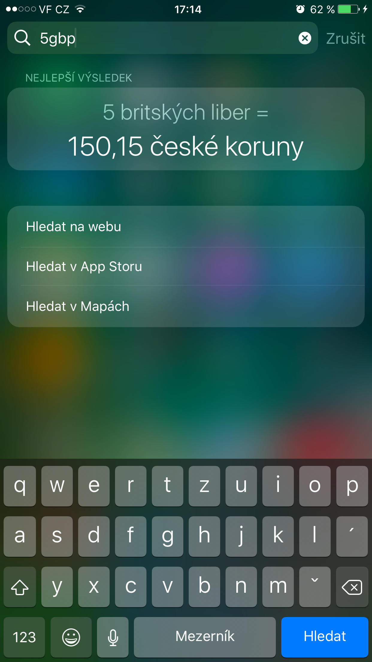 Spotlight dokáže podle aktuálního kurzu převést v podstatě kteroukoliv měnu. Jedinou překážkou je, že musí uživatel znát jejich přesné oficiální zkratky.