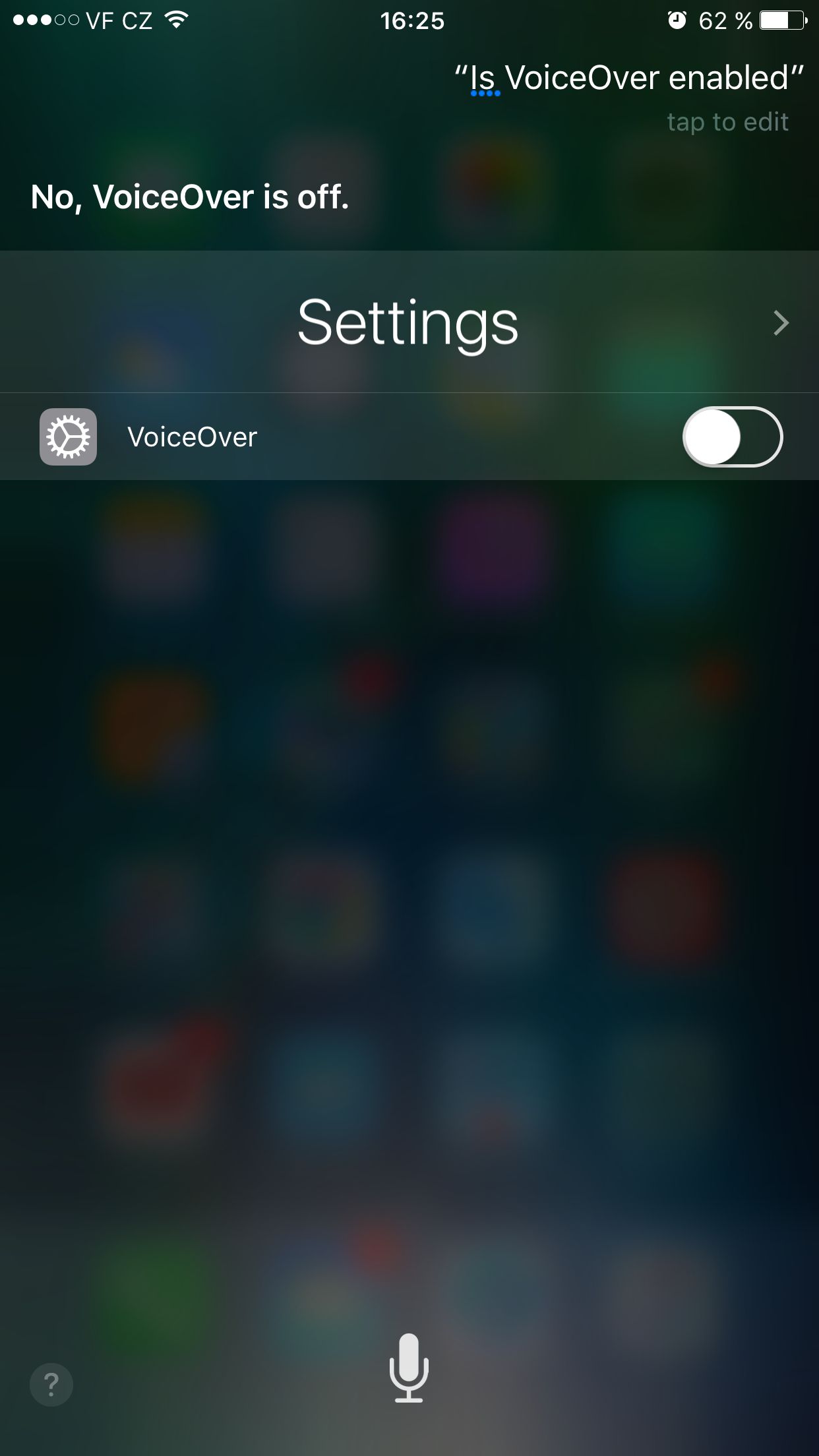 - Is VoiceOver enabled?