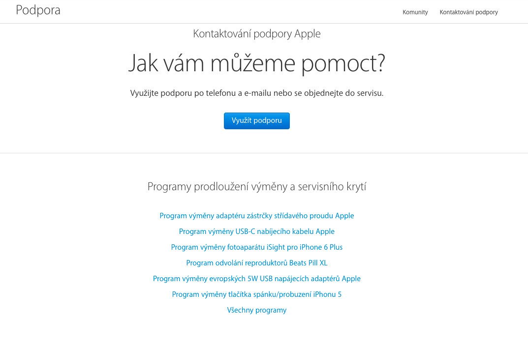 Apple na svých stránkách přidal do sekce podpory webový nástroj „Využít podporu“, díky němuž mají uživatelé možnost přímo přes web získat podporu přes e-mail, telefon, nebo se objednat do servisu. Na stránkách si rovněž mohou zjistit informace o možnostech podpory pro svá registrovaná zařízení.