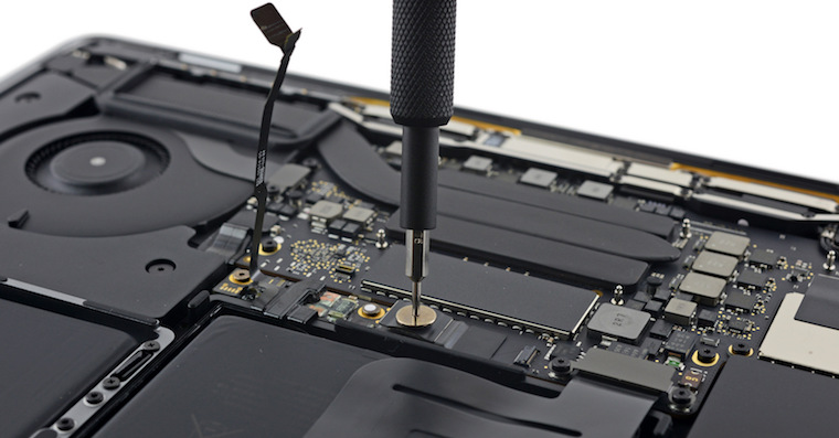 Jak se již zjistilo dříve, SSD je vyjímatelný a k desce není připájený způsobem, na jaký jsme zvyklí z ostatních notebooků od Applu. Způsob ovládání SSD již Apple použil například u Retina iMacu. Příslušné komponenty třetích stran zatím nejsou k dispozici, proto v současné chvíli nelze SSD vyměnit za jiný. Co se rychlosti týče, měla by být o celých 100% vyšší než u předchozí generace.