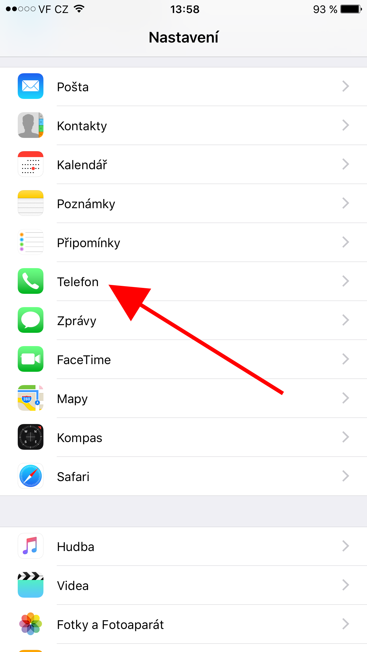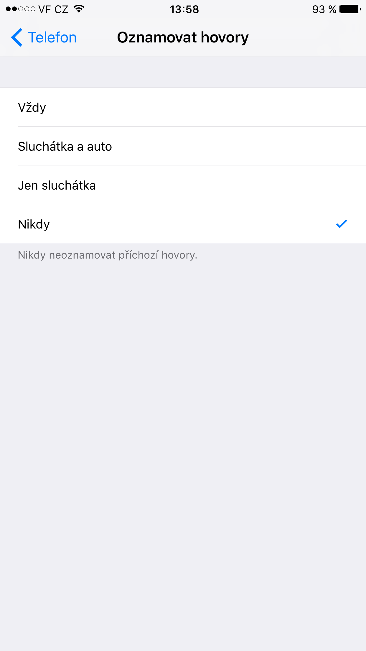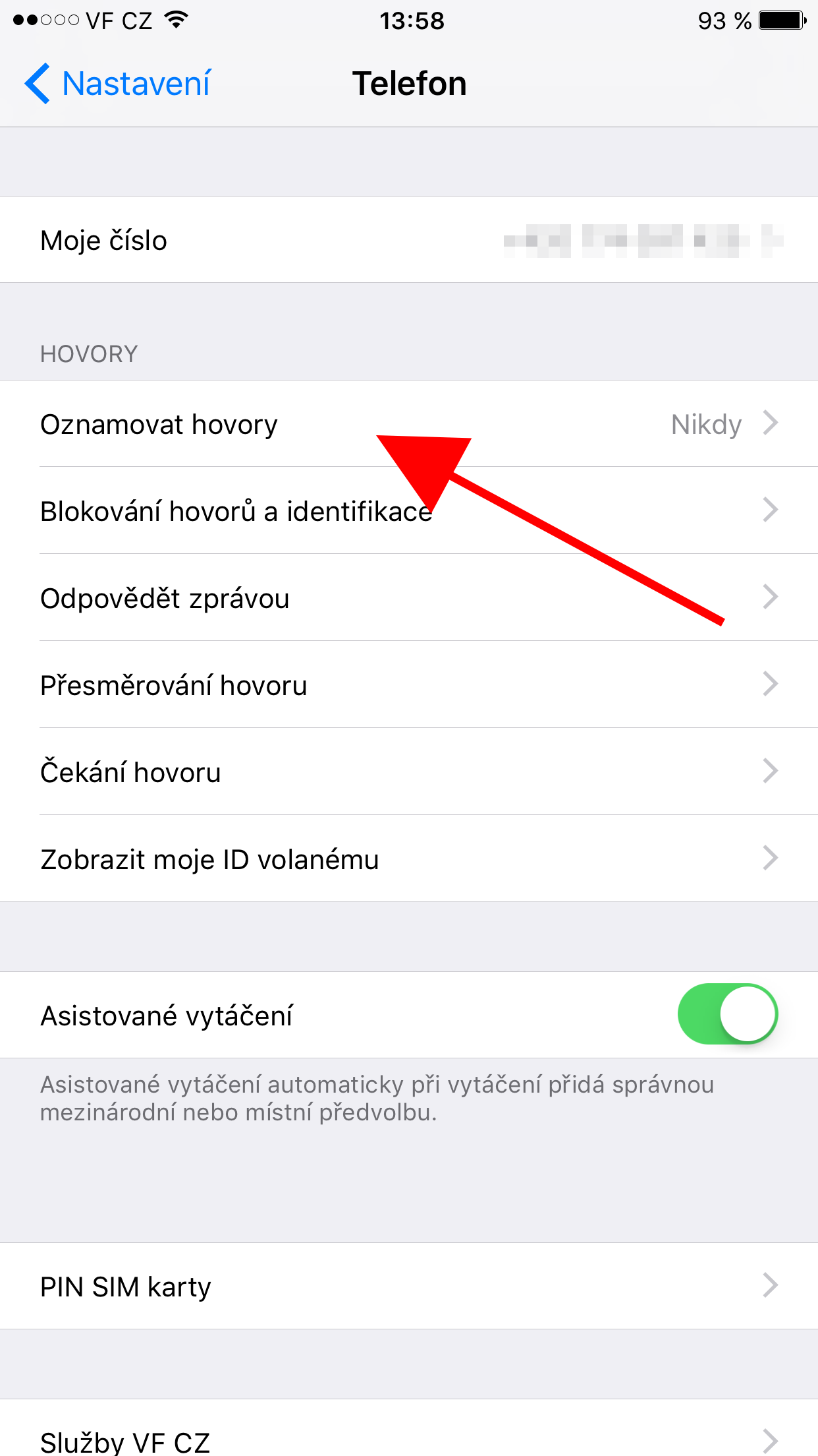 - Hned první položkou v sekci Hovory je „Oznamovat hovory„.