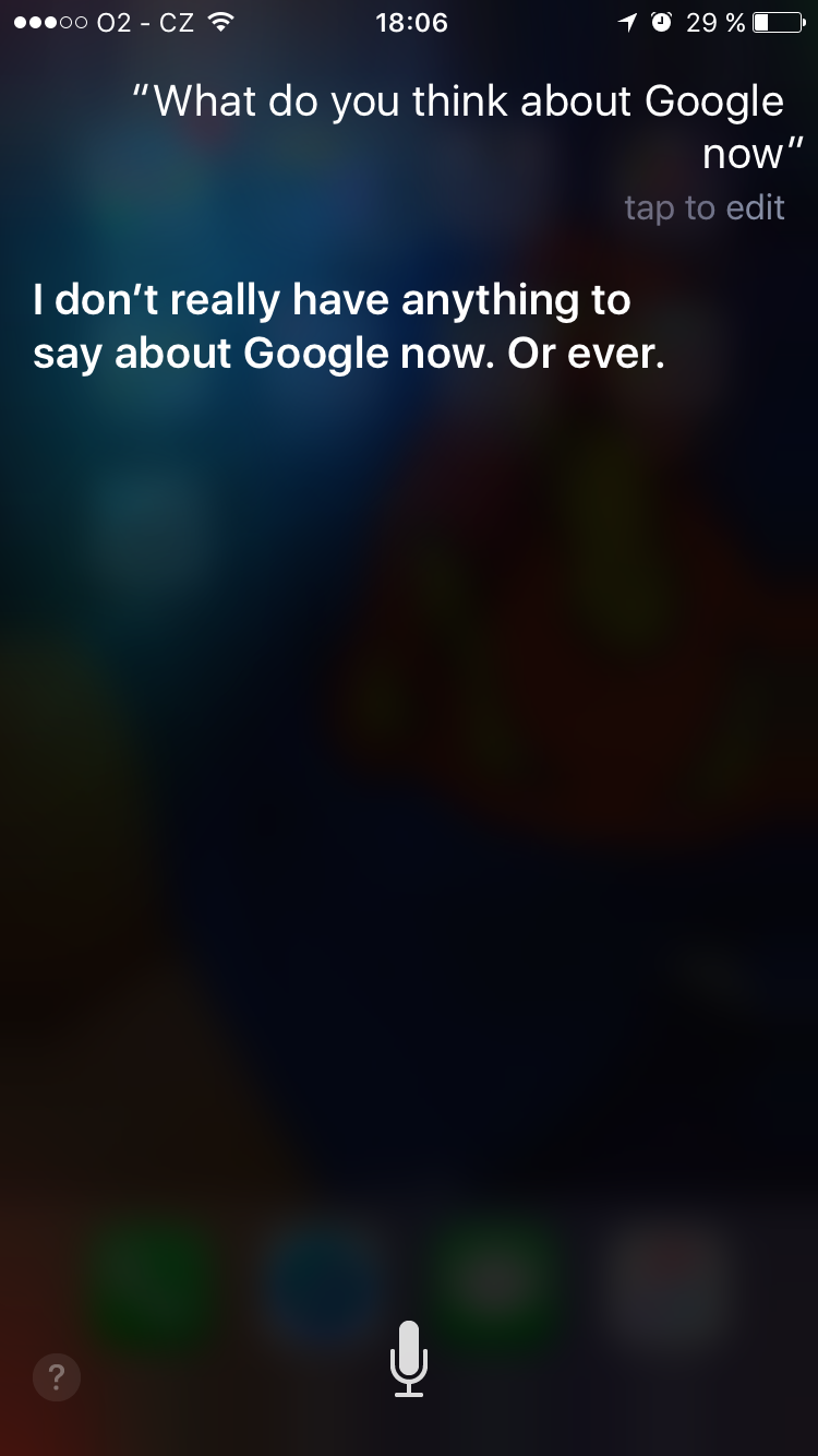 Zkuste Siri oslovit „Hey Cortana,“ jménem virtuální asistentky Microsoftu. Odpověď? Jako byste čekali od ženské… Akorát se vás nebude ptát, kdo je Cortana a jak dlouho ji podvádíte..