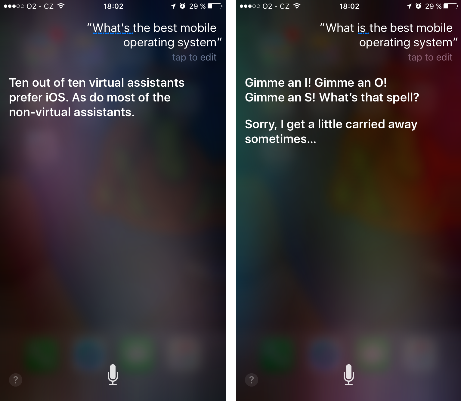 „Deset z deseti virtuálních asistentů preferuje iOS. Stejně jako většina ne-virtuálních.“