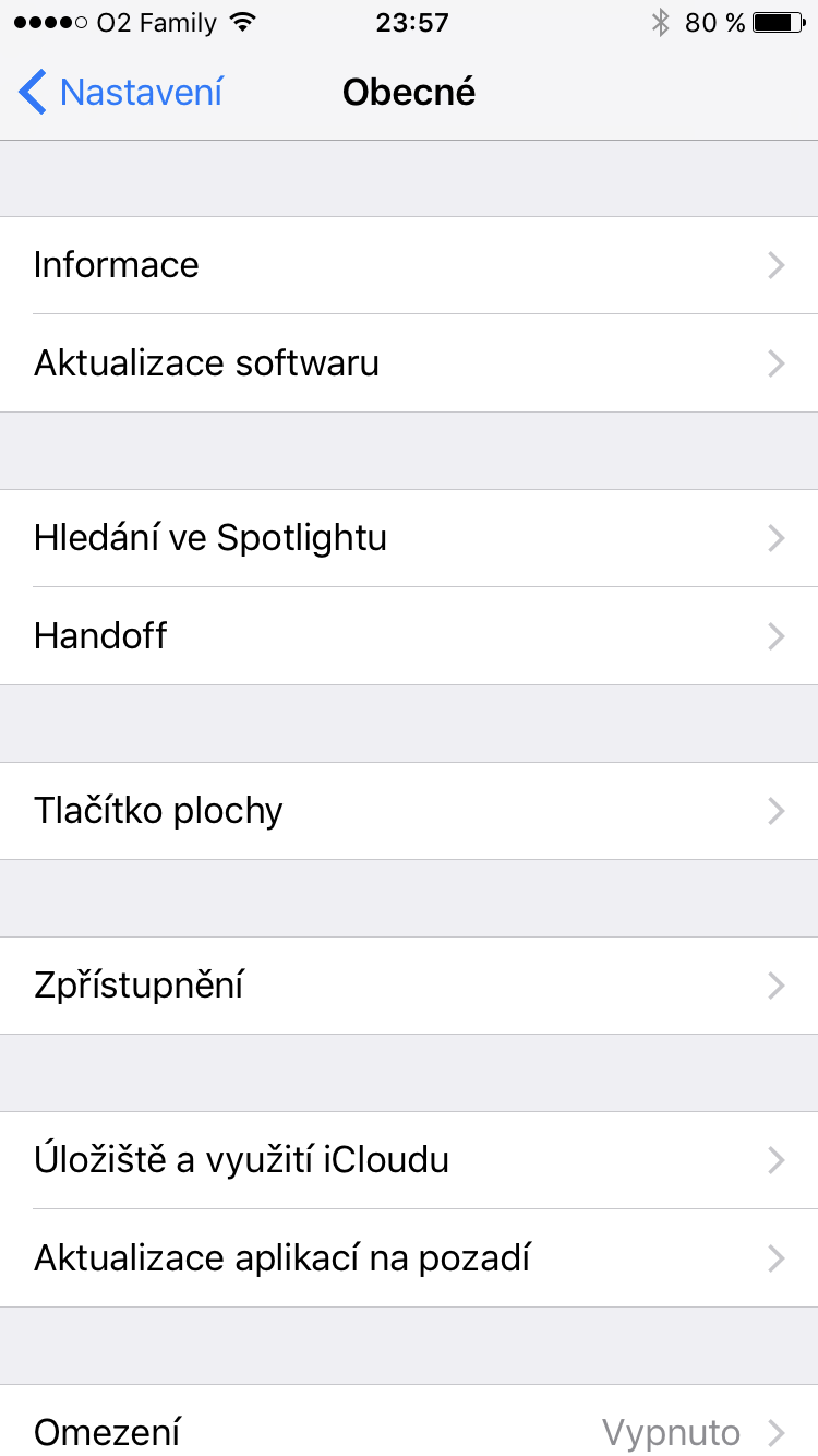 - Zmizelo i natavení pro funkci SOS v Obecné