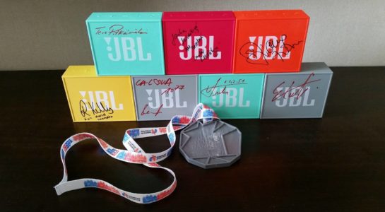 Ako dlhoročný exkluzívny distribútor značky JBL pre Českú a Slovenskú republiku sme sa rozhodli podporiť komunitný projekt obnovy atletiky v Košiciach. Využívame pri tom každú príležitosť. Počas celého roka sme trpezlivo oslovovali svojich priateľov, kamarátov a osobnosti, aby prispeli svojim podpisom na reproduktory JBL k vytvoreniu jedinečnej zbierky.