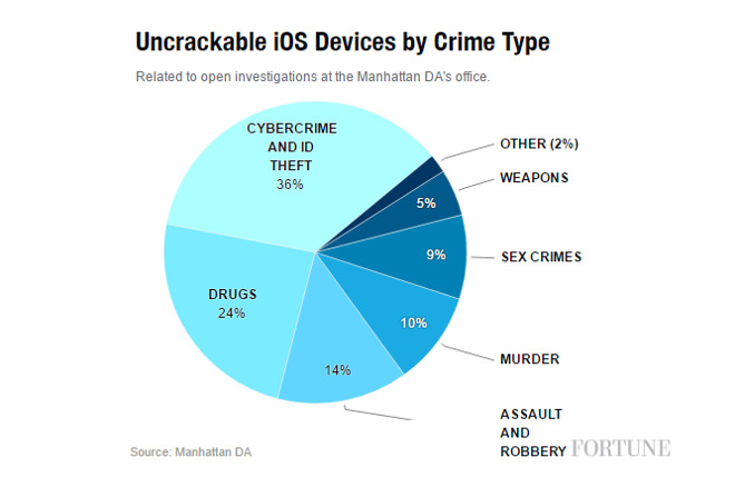 Kancelář okresního návladního na Manhattanu má mezi důkazním materiálem 423 zařízení od Applu, do kterých není možné se dostat. Jedná se o iOS zařízení s iOS 8 a novějším. Nejčastějším modelem je iPhone 6, který je zde v zastoupení 166 kusů. Informoval o tom web Fortune. iPhone 6 Plus je v seznamu zařízení zastoupen v počtu 66 kusů, iPhone 6s pak v počtu 63 kusů.