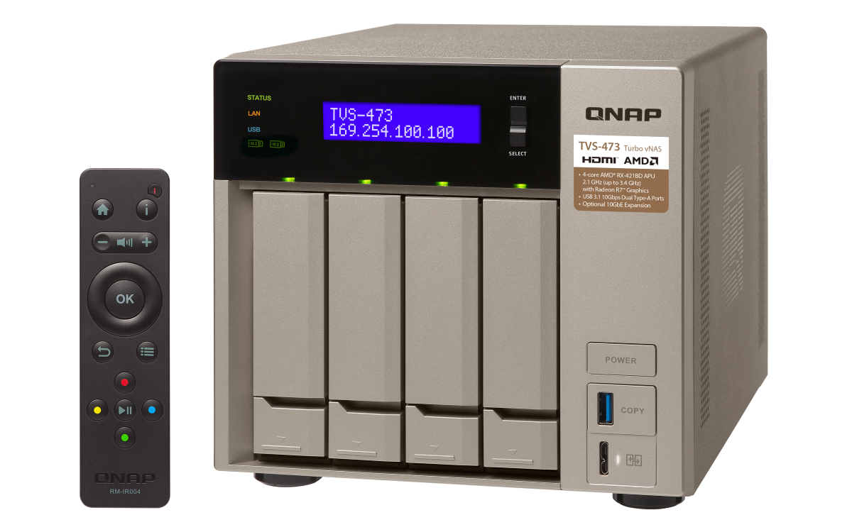 Řada TVS-x73 je vybavena GCN architekturou AMD třetí generace s průlomovým výkonem GPU pro podporu dekódování videí 4K H.264 a displejů 4K UHD, což je ideální pro aplikace k ukládání a přehrávání médií. Díky duálnímu HDMI výstupu a přiloženému dálkovému ovládání poskytuje TVS-x73 uživatelům ideální základnu pro optimální audiovizuální prožitek.