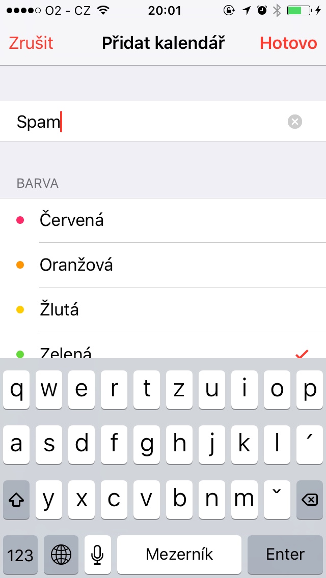 - Pojmenujte kalendář (například „Spam“) a klepněte na Hotovo v pravém horním rohu obrazovky.Klepněte opakovaně na Hotovo, dokud se nedostanete zpět na kalendář.