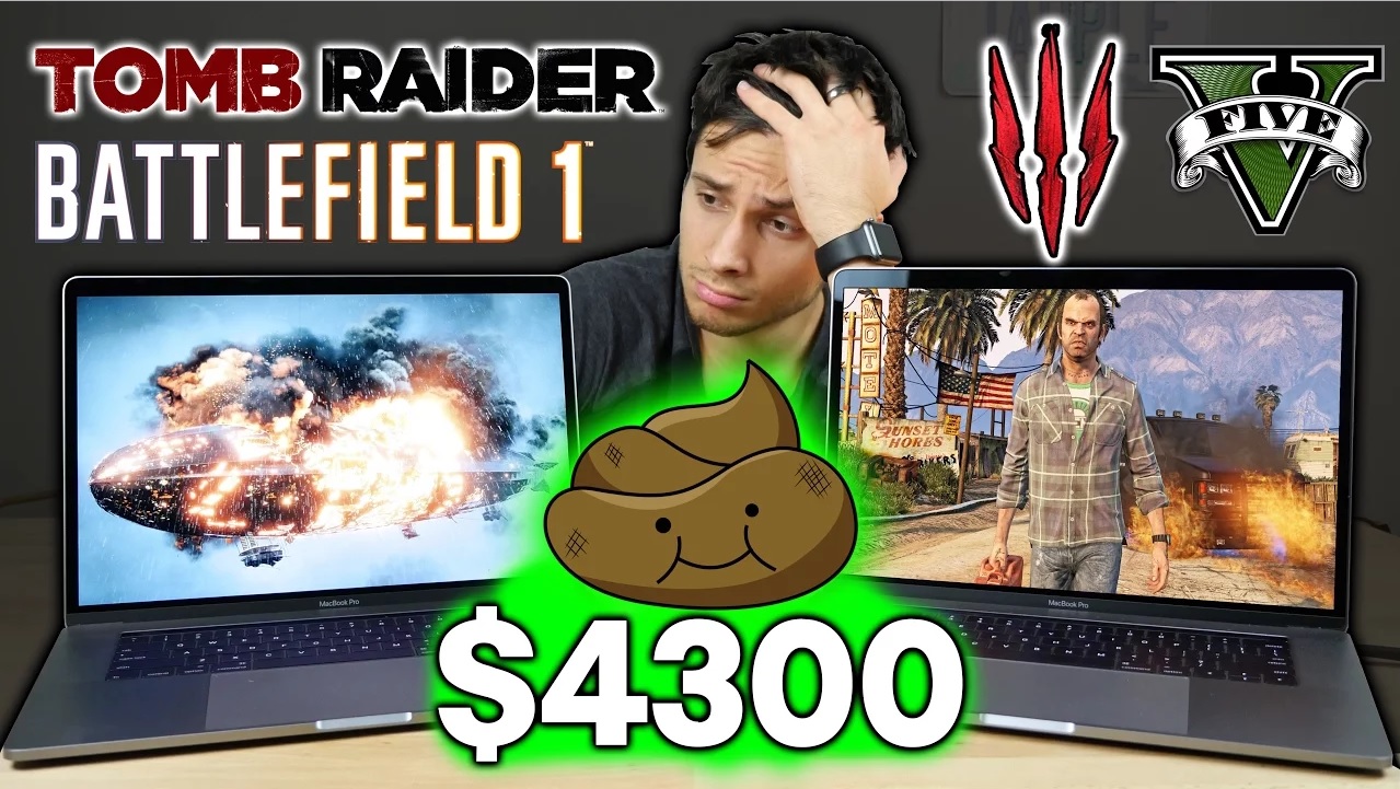 Velmi zajímavá videa se objevila na kanále EverythingApplePro. Autor zkouší, co jeho nabušený MacBook zvládne. V konfiguraci má to nejlepší, co jde do nového MacBooku nacpat. Nejprve zkouší zajímavý titul, který využívá pokročilé fyziky v rámci samotného gameplaye. V jednoduchých scénách je hra jakž takž hratelná (30fps), jakmile se načtou složitější objekty a fyzikální výpočty začnou být náročnější, hra se stává nehratelnou a je zní jen slideshow. Dalším titulem je Mafia 3, kterou autor rozjel přes Bootcamp. Mafia je sama o sobě extrémně špatně optimalizovaným konzolovým portem a na Macu se to tak projevuje. I při nízkém nastavení detailů a FHD rozlišením hra běží tragicky. Navíc je hra velmi zabugovaná, takže se rozhodně nejedná o příjemný herní zážitek.