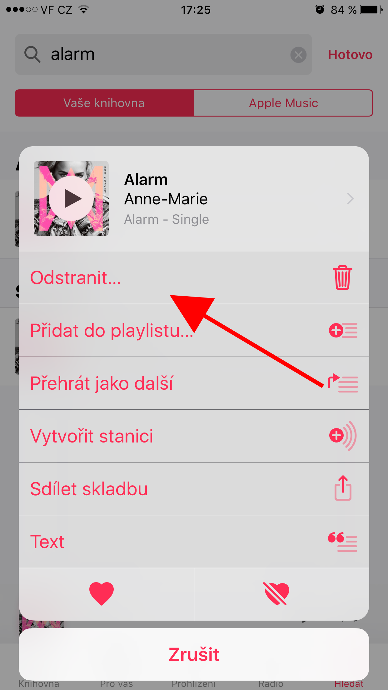 Pokud chcete v iOS vymazat určitou skladbu nebo album, budete je muset nejprve najít v aplikaci Apple Music. Poté na dané položce podržte prst a zvolte „Odstranit“ a poté „Smazat ze stažených„.