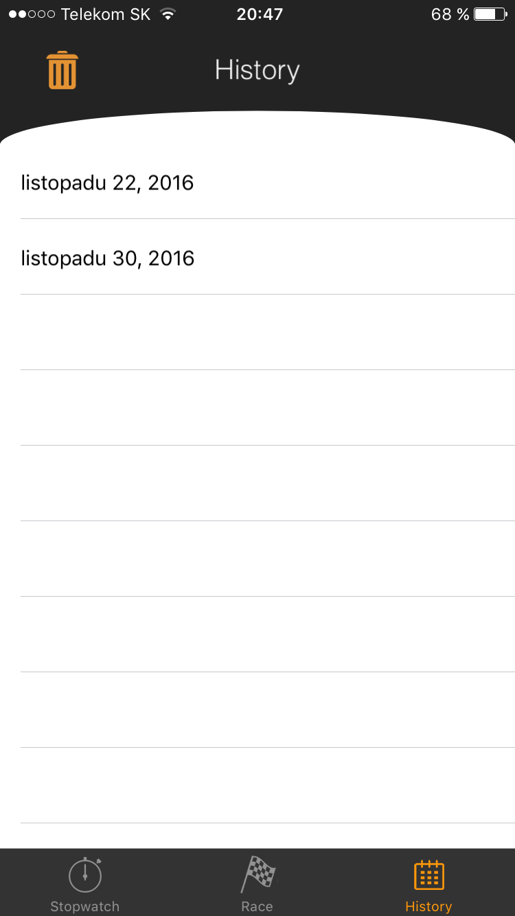 I během měření můžete snadno vysunout boční panel, na kterém vidíte aktuální výsledky a po rozkliknutí také jednotlivé časy všech účastníků. Pokud chcete někoho například diskvalifikovat, můžete jeho čas vymazat. Jakmile pomocí tlačítka on/off ukončíte jeden závod, okamžitě můžete zahájit nový a přidat nové účastníky. Ten který jste ukončili najdete ve třetí záložce, kde je historie všech závodů, všech časů a všech jmen, ktré jste kdy měřili. Trenéři si tak nemusí nic zapisovat ani pamatovat a vše si uloží přímo a jednoduše do stopek!