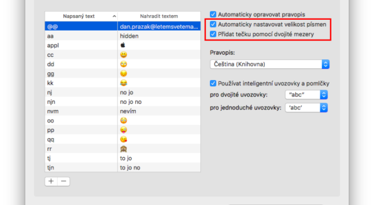 Jak na macOS zapnout automatické psaní velkých písmen a teček