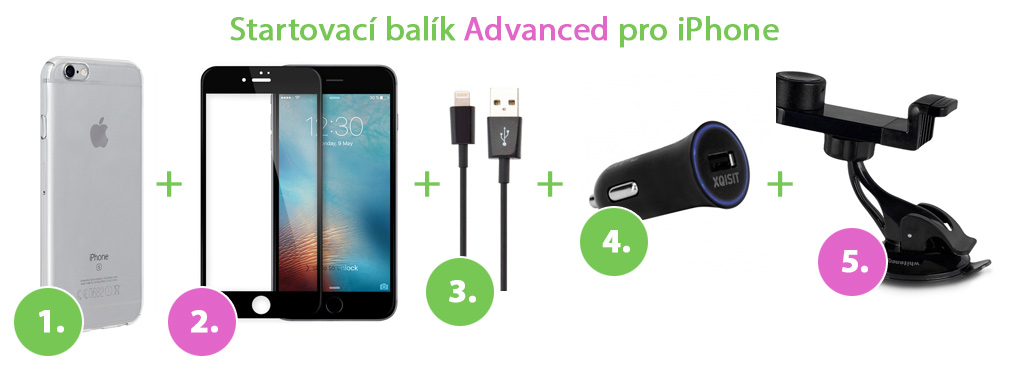 Tento balíček je dostupný pro verze iPhone 6/6s a iPhone 7. Jedná se o pokročilejší balíček příslušenství, který obsahuje vylepšenou verzi ochranného skla a oproti základnímu balíčku má jeden doplněk navíc. Co tedy přesně obsahuje balíček Advanced?