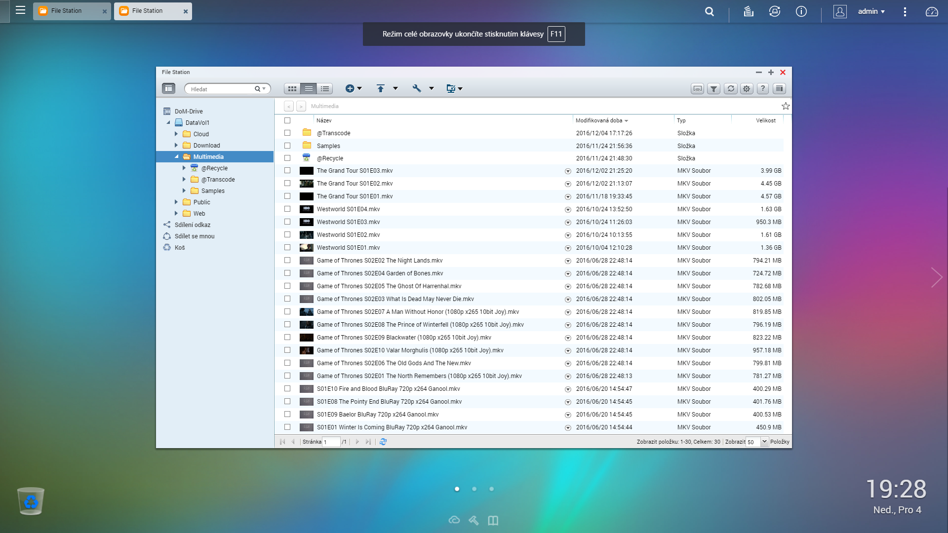 Zde je třeba upozornit na jednu věc. Oficiální aplikace QNAPu v současné době nepodporují přehrávání některých typů souborů. Například ve webovém rozhraní defaultně nepřehrajete jakékoliv soubory, které pro zvuk využívají kodek AC3. Tento problém je přítomný napříč celým QNAP ekosystémem a dle mého názoru je to dost podstatný problém. Za tyto nepříjemnosti mohou problémy s licencemi od Dolby. Společnost QNAP tento problém již několik měsíců řeší, zatím však není známo žádné oficiální stanovisko. Do té doby je tedy nutné používat nějakou 3rd party aplikaci. Těch je ovšem opravdu plno a uživatel má tak velmi široký výběr. Mohu zmínit například PlayerXtreme, Plex, Embi nebo Kodi. Většina z nich ovšem vyžaduje samostatnou registraci a z jednoduchého přehrávání obsahu se tak stává zbytečně komplikované martyrium. Nepříjemné také je, že některé videosoubory přehrát QNAP aplikacemi jdou, jiné nikoliv. Vše závisí na použití audio kodeku. Toto by měl výrobce vyřešit co nejdřív, jelikož to opravdu shazuje funkci celého zařízení.