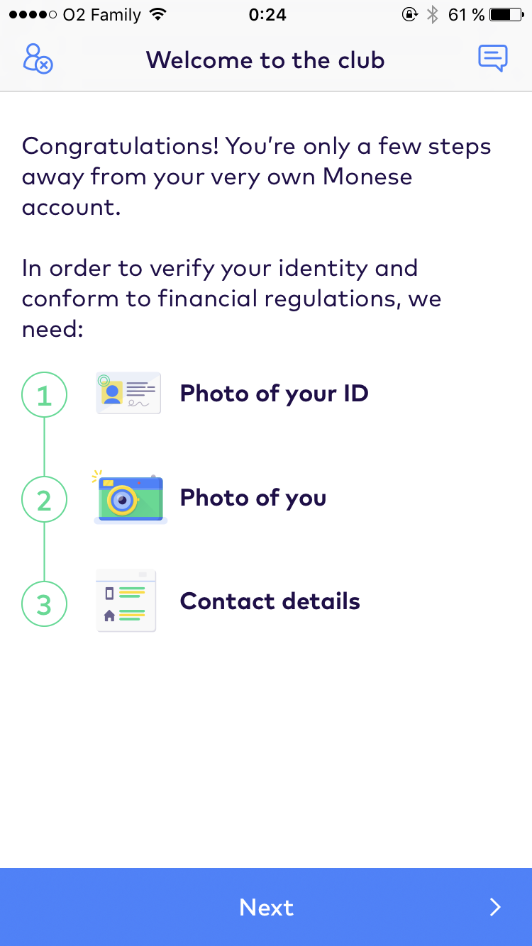 V první řadě je potřeba si stáhnout aplikaci Monese, která patří stejnojmenné anglické bance. Zde je potřeba se zaregistrovat a vyplnit skutečně všechny údaje pravdivě. Při registraci doporučuji zadat kód PUZRMUMA, získáte tak 5 liber navíc (cca 160 Kč). První měsíc je vedení účtu Monese zdarma, poté stojí 4,95 liber měsíčně. Do aplikace Monese musíte vyfotit i svůj občanský průkaz z obou stran nebo pas a stejně tak přiložit i svoji fotografii. Následně je nutné si přes aplikaci nechat zaslat fyzickou platební kartu Monese na svou adresu. Dobrou zprávou je, že karta je zadarmo. Aplikace mi hlásila, že Monese karta dorazí cca do 14 dnů, přišla ale přibližně o týden dříve.