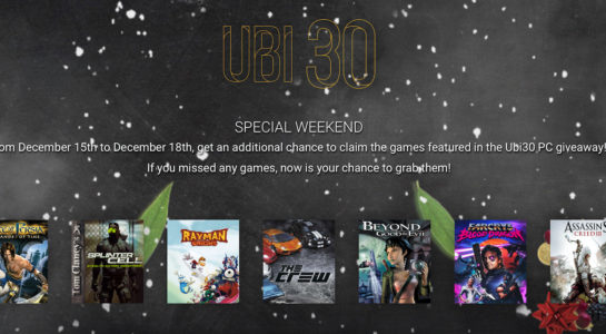 Ubisoft letos oslavuje 30 let od svého založení a během celého podzimu rozdával zdarma hry mezi nimiž zářil nejeden prémiový titul. Pokud jste nestihli sledovat celý podzim stránky Ubisoftu a stahovat jednotlivé tituly, máte nyní možnost vše napravit a stáhnout si během následujícího víkendu všechny hry z podzimní akce zcela zdarma! K dispozici jsou tituly Prince of Persia: The Sands of Time, Tom Clancy’s Splinter Cell, Rayman Origins, The Crew, Beyond Good and Evil, Far Cry 3: Blood Dragon a Assassin’s Creed III. Hry můžete stahovat od dnešního dne do 18. 12. 2016 a to přímo přes službu Ubisoft Club.