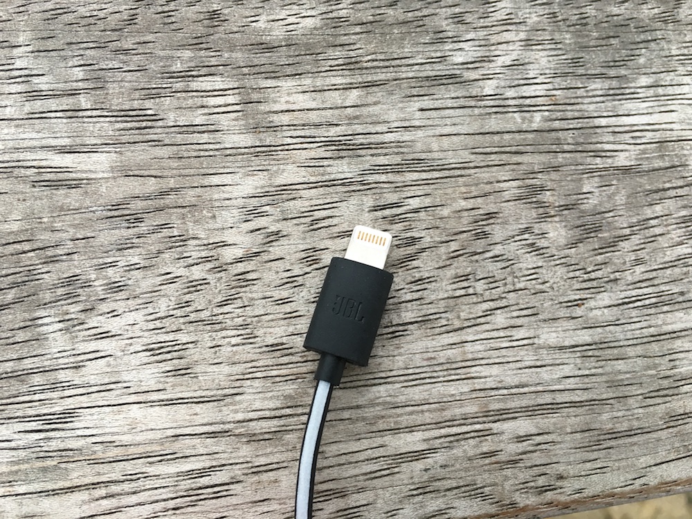 Pokud nebudeme brát v úvahu Lighning konektor, který je kvalitně provedený, tak už nám kabel zdobí jen ovládací prvek, který se nachází v místě, kde se spojují kabel od pravého a levého sluchátka. Na ovládacím prvku nalezneme hned čtyři tlačítka – jedno tlačítko pro zvýšení a druhé pro snížení hlasitosti, dále multifunkční tlačítko, kterým můžete pozastavit, přeskakovat a přetáčet skladbu dopředu i dozadu, zvednout s ním hovor nebo aktivovat Siri a nakonec speciální tlačítko pro aktivování/deaktivování potlačení šumu a určování intenzity filtrování okolního hluku. Na opačné straně se pak nachází už jen mikrofon a logo JBL.