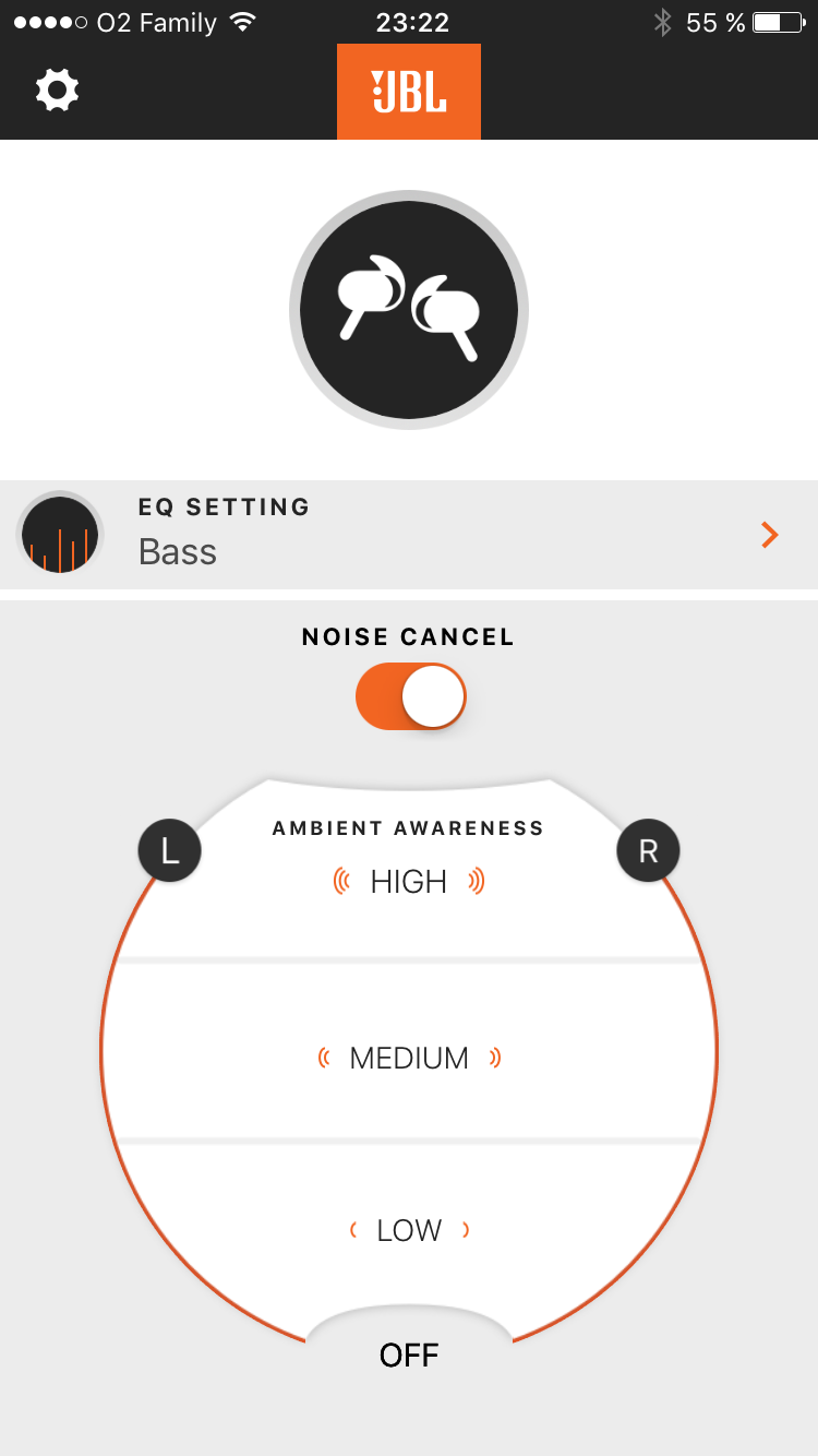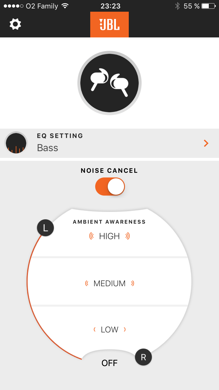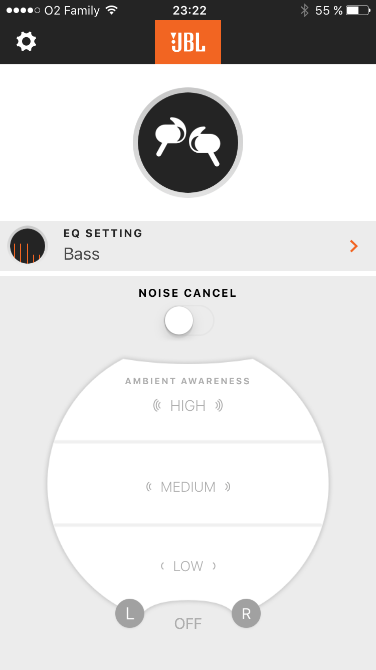 Užitečným doplňkem pro JBL Reflect Aware je i iOS aplikace My JBL Headphones. Aplikaci není nutné instalovat, abyste mohli bezproblémově poslouchat, ale slouží spíše jako takové rozšíření. Nicméně i tak se díky ní dostanete k nastavení, které by jinak jen pomocí ovladače na sluchátkách nebylo možné nastavit.
