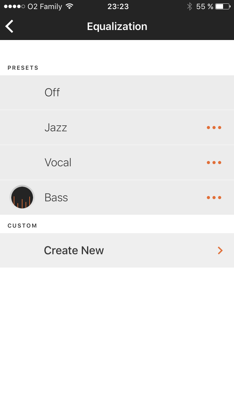 Další výhodou aplikace je ekvalizér. Vybrat si můžete ze tří přednastavených režimů – Jazz, Vocal a Bass. Už samotné názvy jasně říkají, pro jaký typ hudby byste měli jaký použít. Jednotlivé přednastavené režimy je možné si dále upravovat. Stejně tak si můžete vytvořit i zcela vlastní režim, který vám bude nejvíce vyhovovat. V galerii níže můžete vidět, jak nastavování ekvalizéru vypadá. Zesílit případně zeslabit některé části akustického spektra můžete u nízkých, středních i vysokých frekvencí.