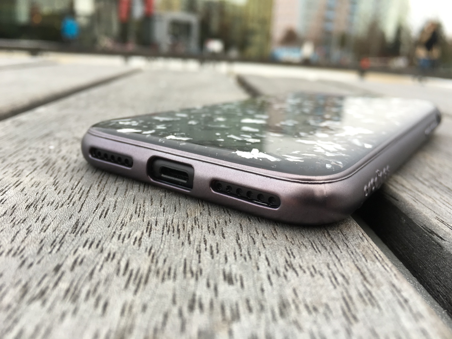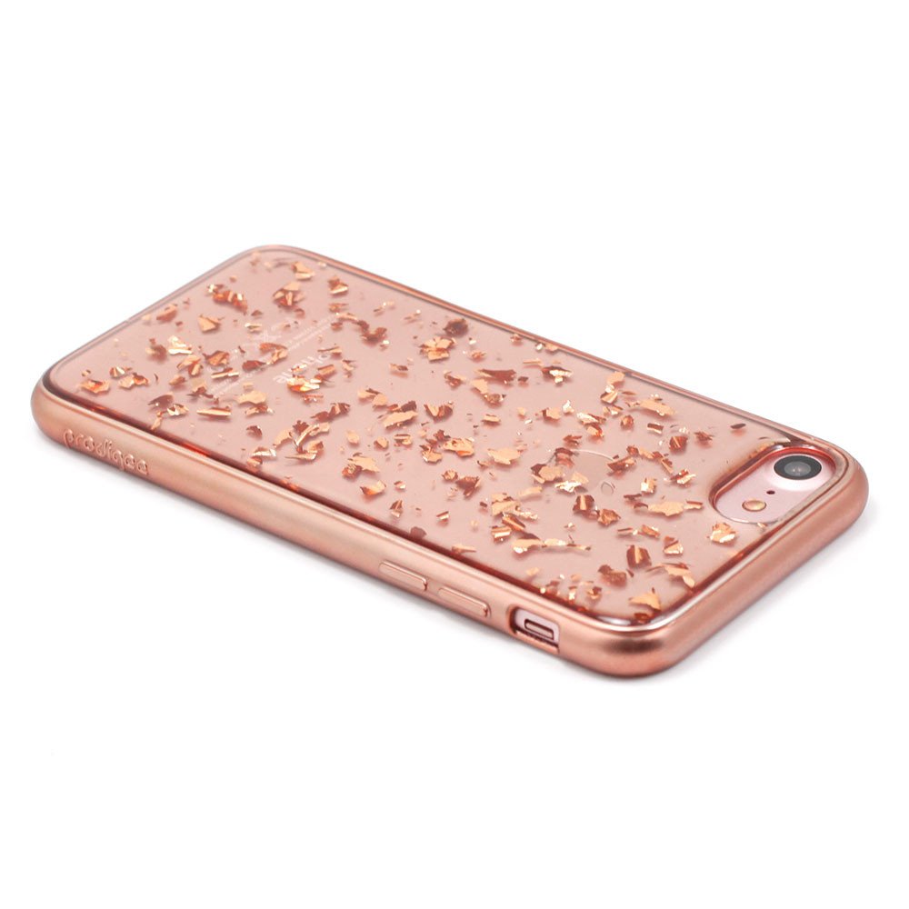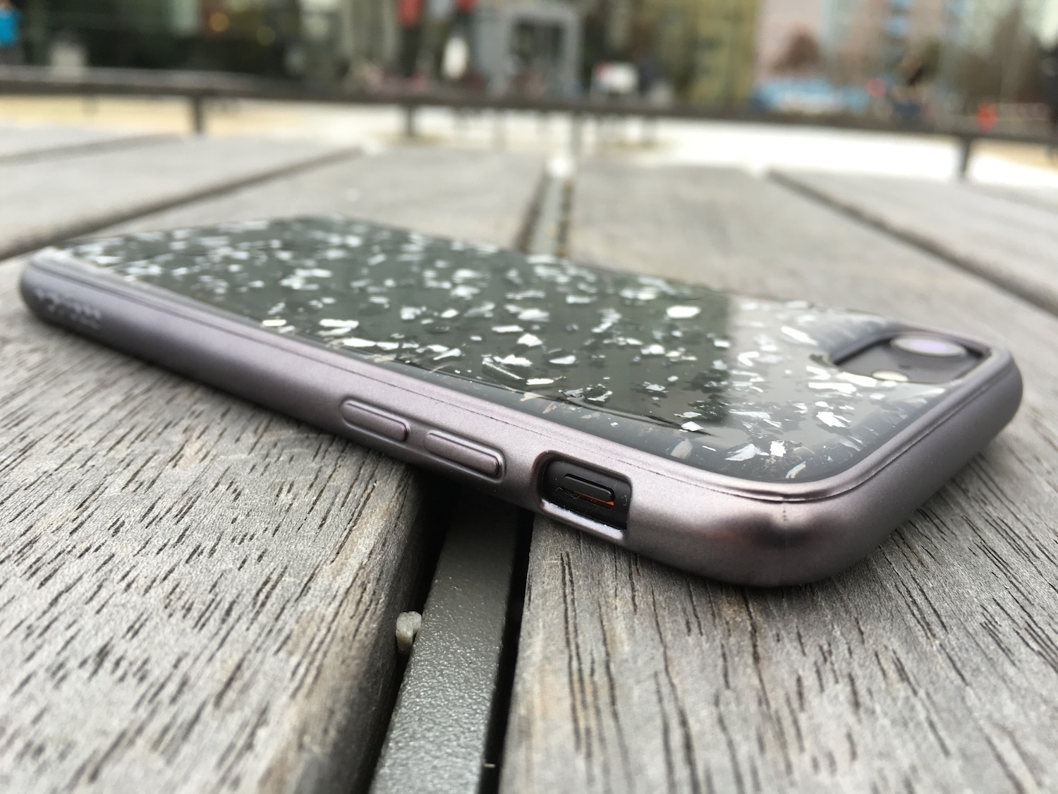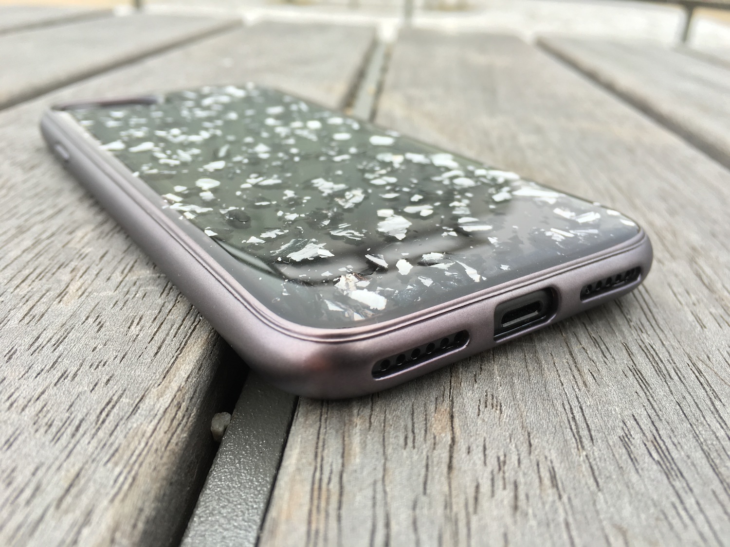 To nejdůležitější, čím obaly vynikají se ukrývá na jejich zadní straně, která chrání záda samotného telefonu. Do průhledného plexiskla jsou totiž zapuštěny zlaté, platinové, stříbrné nebo rose gold „lupínky“ které vypadají, jako by vám do obalu skutečně někdo nastrouhal zlatou cihličku. Lupínky sice nepvyčnívají z těla obal, ale když po nich přejedete prstem, některé z nich cítíte. Obal se díky tomu skvěle drží a neklouže ani když máte zpocené ruce. To stejné platí i z vnitřní strany, kdy obal skvěle lícuje s tělem iPhonu a drží naprosto pevně bez jakéhokoli drobného pohybu.