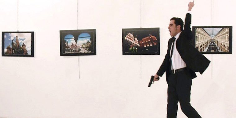 Dvaašedesátiletý ruský velvyslanec Andrej Karlov byl v pondělí zastřelen v galerii v Ankaře. Vrahem byl dvaadvacetiletý policista Mevlut Mert Altintas, při střelbě vykřikoval hesla o pomstě za Aleppo. Altintas byl následně zastřelen tureckými speciálními jednotkami. Turecko i Rusko popsalo jeho čin jako vraždu, která měla destabilizovat vztahy mezi oběma zeměmi v souvislosti s konfliktem v Sýrii.