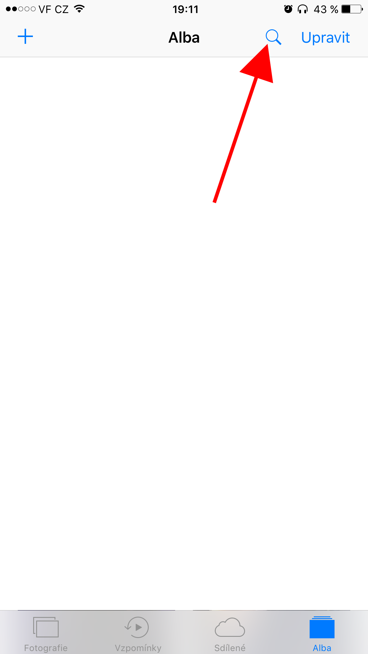 - Na kartě Fotografie, Vzpomínky nebo Alba klikněte v horním panelu na tlačítko lupy.