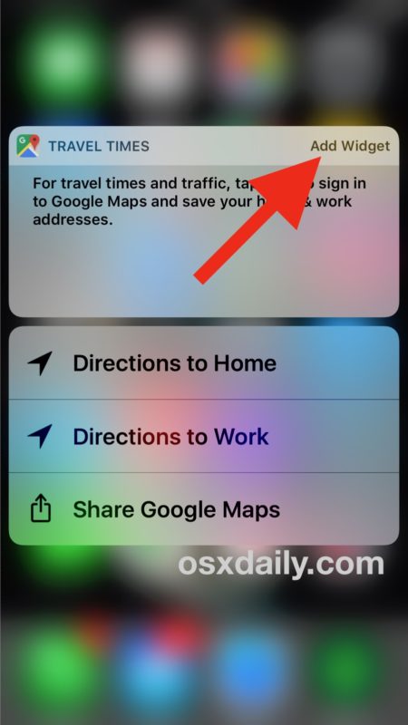 Widgety, které se v mobilním operačním systému iOS objevily poprvé v iOS 9, byly s příchodem další velké aktualizace iOS vylepšeny. Tím vylepšením je, že je možné widgety pomocí 3D Touch zobrazit rovnou na domovské obrazovce bez nutnosti swipování. Stačí zatlačit na ikonu některé aplikace, která nabízí widget a je optimalizována pro iOS 10. Ten se pak zobrazí nad dalšími tlačítky. Díky tomuto gestu je pak možné si widget i rychle připnout na kartu Zobrazení dnešního dne mezi ostatní.