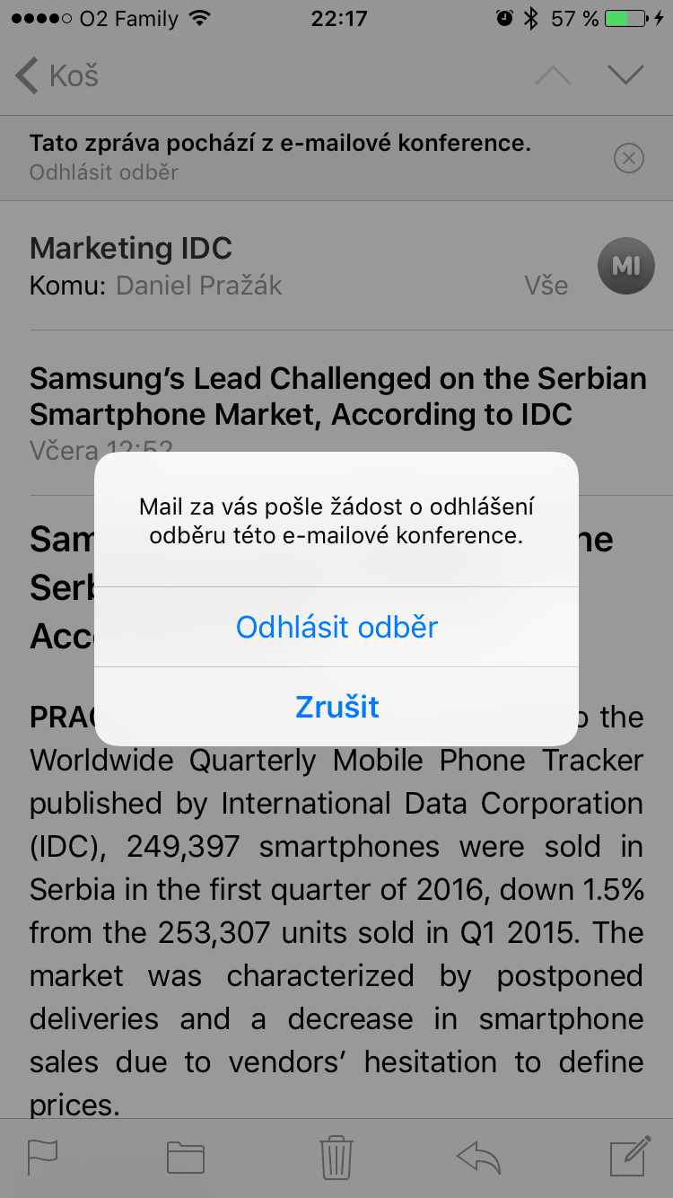 18) Emailová aplikace vás rychle odstraní z nechtěných seznamů