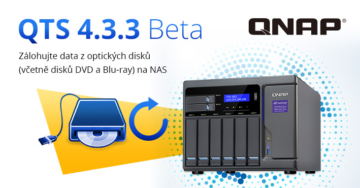 Tisková zpráva: Společnost QNAP® Systems, Inc. dnes ohlásila vydání nejnovější verze svého inteligentního operačního systému pro NAS – systému QTS 4.3.3 Beta – který přidává podporu pro zálohování souborů dat přímo z kompatibilních USB mechanik pro optické disky (včetně mechanik na disky DVD a Blu-ray).