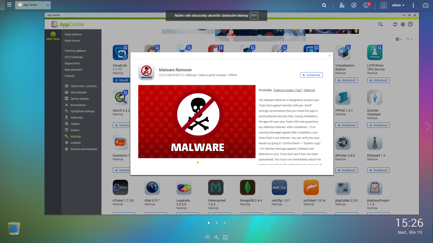 Stejně jako Windows Defender není jedinou možností, jak chránit svůj počítač, tak ani defaultní antivirus v NASu není jedinou možnou volbou. V katalogu aplikací se nachází hned několik alternativ, které výchozí řešení nějakým způsobem doplňují, nebo jej zcela nahrazují. Nejpopulárnějšími aplikacemi v katalogu je například aplikace Malware Remover, která, jak již název napovídá, pomáhá s odstraněním škodlivého malwaru. Další stálicí v nabídce je antivirus od nechvalně proslulé společnosti McAfee. Je ovšem otázkou, nakolik se jedná o opravdový antivirus, nebo jde spíše o formu malwaru/spywaru.