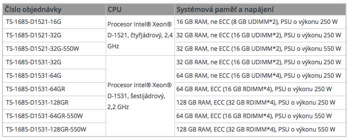 *Minimální objednávané množství (MOM) potřebné pro procesor Intel® Xeon® D-1548. Bližší podrobnosti vám rádi sdělí obchodní zástupci společnosti QNAP.