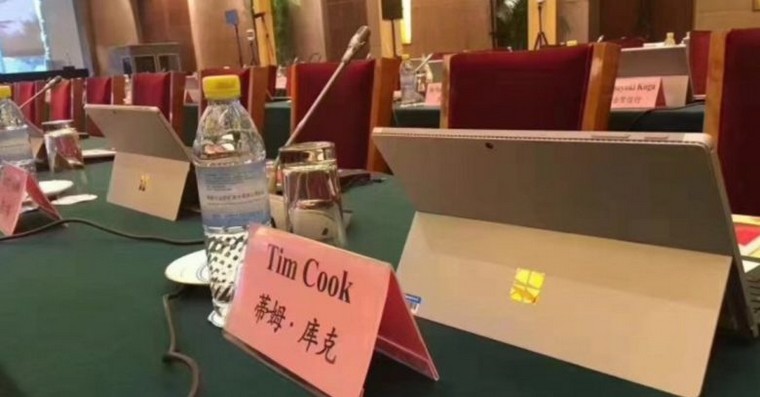 Tim Cook byl jeden z 300 účastníků letošního fóra China Development Forum. Microsoft na události, kterou sponzoroval, poskytoval tablety Surface Pro 4, prostřednictvím nichž mohli zúčastnění sledovat prezentace, dělat si poznámky v aplikaci Microsoft Office anebo elektronicky pokládat otázky. Ale lidé většinou Surface Pro 4 odložili a použili jiný počítač či tablet. Tim Cook použil Surface Pro jako stojánek pro iPad.