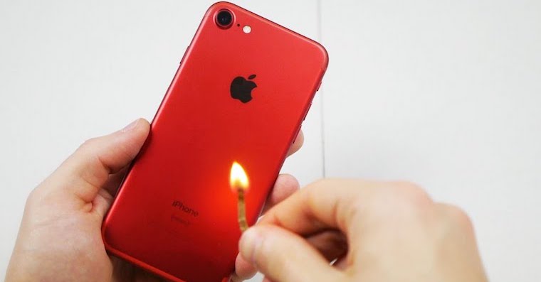 Nový iPhone 7 (PRODUCT)RED se začal prodávat teprve včera odpoledne, ale nejznámějších likvidátor iPhonů TechRax už stihl jeden z nich zapálit. Sám uvádí, že prý slyšel, že je červený iPhone 7 ohnivzdorný, a tak se to rozhodl vyzkoušet. Telefon skutečně sedm vteřin trvajícímu ohni odolal, ale věřte nám, že ohnivzdorný není. Alespoň ne o nic víc, než ostatní barevné varianty.