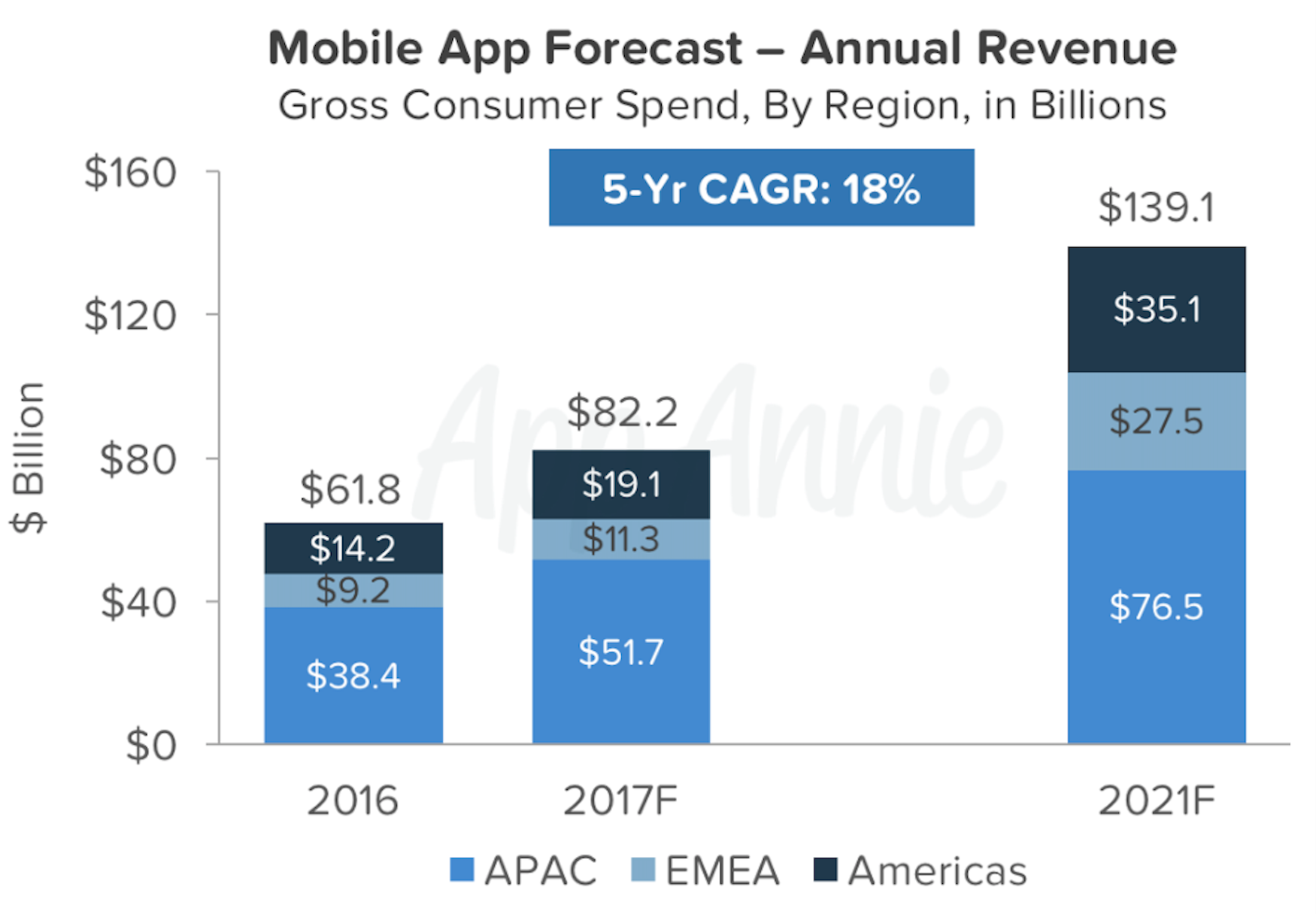 „App Store by měl zůstat nejlukrativnějším obchodem s aplikacemi a spotřebitelé by v něm měli v roce 2021 utratit 60 miliard dolarů. Nicméně pokud by se sečetly útraty uživatelů na Google Play a na platformách třetích stran prodávajících Android aplikace, potom by v letošním roce měl Google získat dominantní postavení na trhu, co se aplikací týká“ uvádí App Annie.