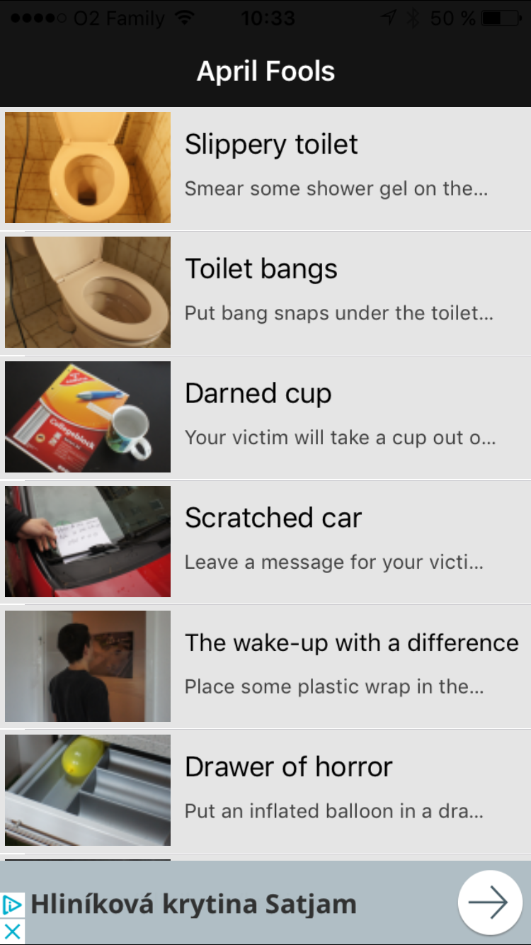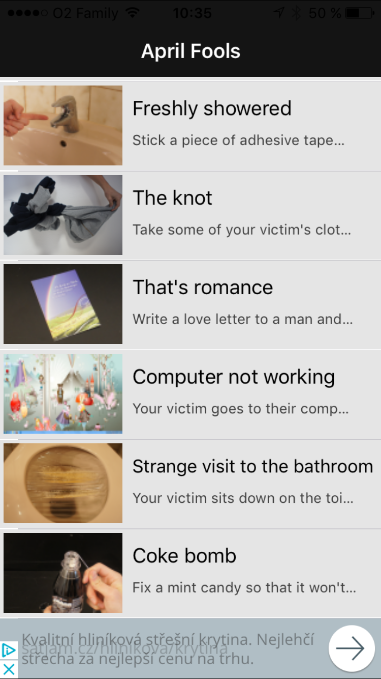 Aplikace, která vám pomůže s nachystáním dokonalého vtípku. Naleznete zde několik návodů a postupů, jak vše jednoduše provést. Na výběr je toho pomerně hodně od jednoduchých až po složitější aprílové vtípky. Postup je popsán je pouze v angličtině, avšak ta je jednoduchá a mnohdy vše pochopíte i jen z přiložených obrázků.