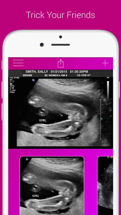 Aplikace hlavně pro ženy a dívky Vygeneruje vám snímek z ultrazvuku, kde je jasně vidět, že jste těhotná. Dokonale tak můžete vystrašit svého partnera, ovšem v některých případech i potěšit. Samozřejmě ji mohou využít i muži a to tak, že své přítelkyni/manželce pošlou snímek z ultrazvuku své „milenky“ s doplňujícími informacemi, jak se to vše vlastně stalo.