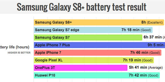 Vysvětlení je velmi jednoduché. Ačkoliv má iPhone podstatně menší kapacitu baterie, nemusí se starat o napájení tolik náročných komponent. Největším žroutem elektrické energie je displej, který je v iPhonu 7 Plus 5,5″ s FHD rozlišením. Ačkoliv má nový Samsung Galaxy S8+ OLED panel, který je oproti IPS méně energeticky náročný, stále má obří rozměry (6,2″) a vysoké QHD+ rozlišení. Výdrži baterie v iPhonu také napomáhá pevnější provázanost systému s hardwarem, což může být další kámen úrazu u konkurence. Celý původní test si můžete prohlédnout na webu serveru PhoneArena.