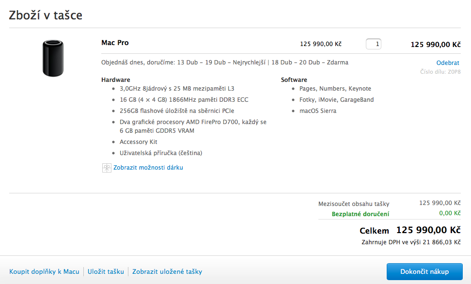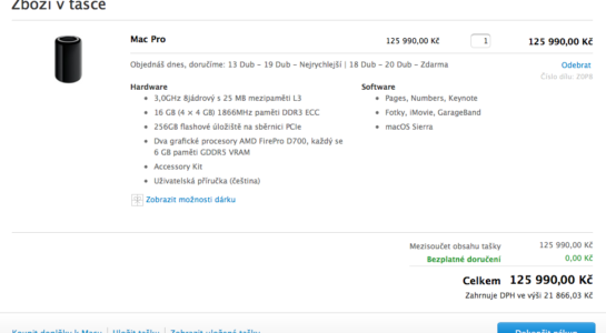 Hlavní příčinnou zpoždění zřejmě jsou změny v balení, jelikož 8-jádrový Mac Pro není k dispozici pouze jako základní konfigurace pro resellery a zákazníky. Jak píšeme výše, nakonfigurovat si ho můžete. Pokud si nakonfigurujete specifikaci identickou se základním 8-jádrovým modelem, zaplatíte za něj také 125 990 Kč a doba doručení je přibližně týden (při expresním doručení).