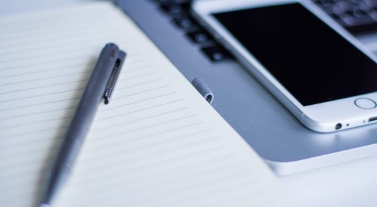 notebook and smartphone on laptop