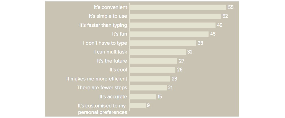 V rámci studie společnosti sesbíraly názory více než jednoho tisíce majitelů chytrých telefonů. Výsledky studie ukazují, že uživatelé používají digitálního osobního asistenta, protože je to rychlejší, vhodnější a jednodušší. Dokonce někteří respondenti naznačili, že používají inteligentního asistenta, protože je to zábava.