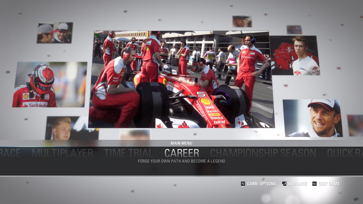 F1 2016 nabízí od multiplayeru, přes základní jednotlivé závody, až po kariérní mód, ve kterém musíte testovat svůj monopost aby jej team mohl vylepšovat. Samozřejmě si můžete zajed i sezónu bez nutnosti kariérního růstu s tím, že vše odpovídá letošní sezóně tedy od jmen jezdců, vzhledu tratí které jsou na milimetr přesné s originálem až po výkon jednotlivých monopostů. Super je, že si můžete vše nastavit a tak můžete jedním závodním víkendem strávit klidně skutečný víkend v případě, že si zajedete dvojici tréninků, tři kola kvalifikace, zahřívací kolo a samozřejmě samotný závod. Můžete si však vše upravit a tak já jezdím vždy pouze kvalifikaci a poté po zahřívacím kole ostrý závod. Hra tedy nabízí zábavu jak pro člověka, který si chce zajed skutečně plnohodnotný závodní víkend a jedním hraním trávit dlouhé hodiny, tak i pro toho kdy má čas na čtyřicet minut a zvolí si pouze samotný závod s 50% dotací kol oproti oficiálnímu závodu.