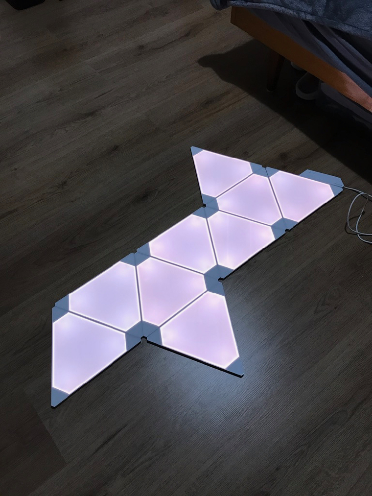 Ještě před samotným nalepením panelů na zeď je určitě dobré si obrazec seskládat na zemi, celý systém si zapojit a vyzkoušet. Na škodu není ani vytvoření jakéhosi návrhu na zdi z přiložených fólii se stejným rozměry jako jednotlivé panely. Díky návrhu totiž přesně uvidíte, jak velký bude celkový obrazec a jestli se na zvolené místo skutečně hodí. Jakmile je vše otestováno, může se začít s lepením panelů přímo na zeď.